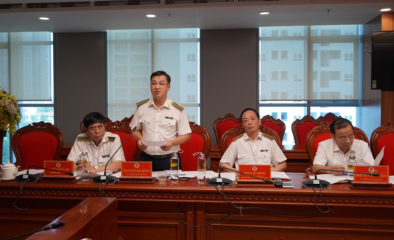 Trình bày dự thảo Báo cáo tình hình đại hội các đảng bộ, chi bộ trực thuộc Đảng bộ KTNN và công tác chuẩn bị Đại hội Đảng bộ KTNN lần thứ VII, Ủy viên Ban thường vụ Đảng ủy, Chánh Văn phòng Đảng - Đoàn thể Nguyễn Bá Dũng cho biết: Đến thời điểm hiện tại, đã có 34/34 đảng bộ, chi bộ trực thuộc Đảng bộ KTNN tổ chức đại hội. Nhìn chung, công tác chuẩn bị và tổ chức đại hội ở các đảng bộ, chi bộ đã diễn ra nghiêm túc, chu đáo, bám sát hướng dẫn của Đảng ủy KTNN trên tinh thần tiết kiệm, an toàn, không phô trương, hình thức, phát huy tinh thần dân chủ, trách nhiệm của tập thể cấp ủy và cán bộ đáng viên. Về công tác chuẩn bị Đại hội Đảng bộ KTNN lần thứ VII, 04 Tiểu ban phục vụ Đại hội gồm Nhân sự, Văn kiện, Tuyên truyền và Tổ chức phục vụ đã bám sát nhiệm vụ được phân công phối hợp với các đảng ủy, chi ủy trực thuộc chủ động triển khai nhiệm vụ theo đúng kế hoạch.