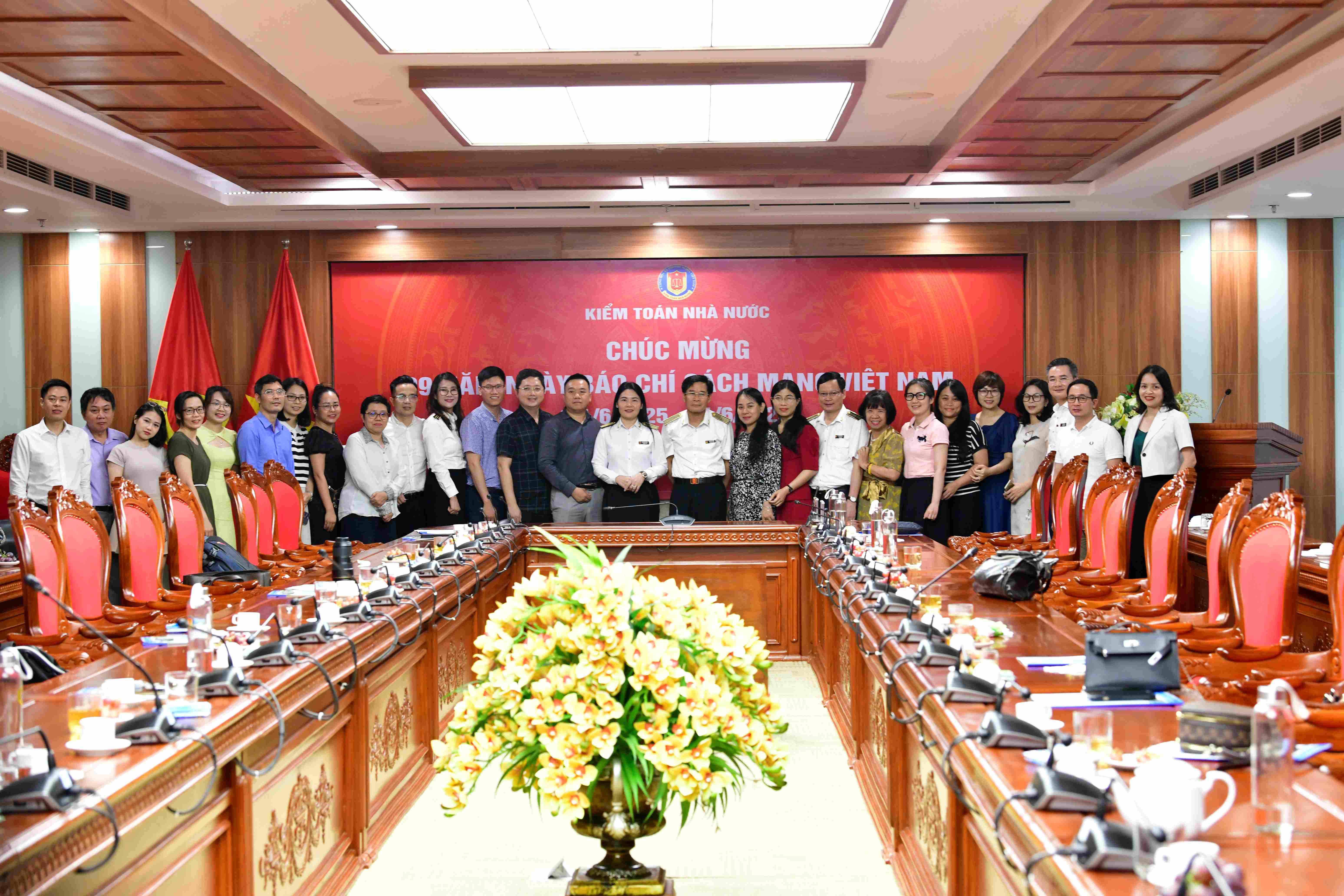 Lãnh đạo KTNN chụp ảnh lưu niệm cùng phóng viên các cơ quan báo chí