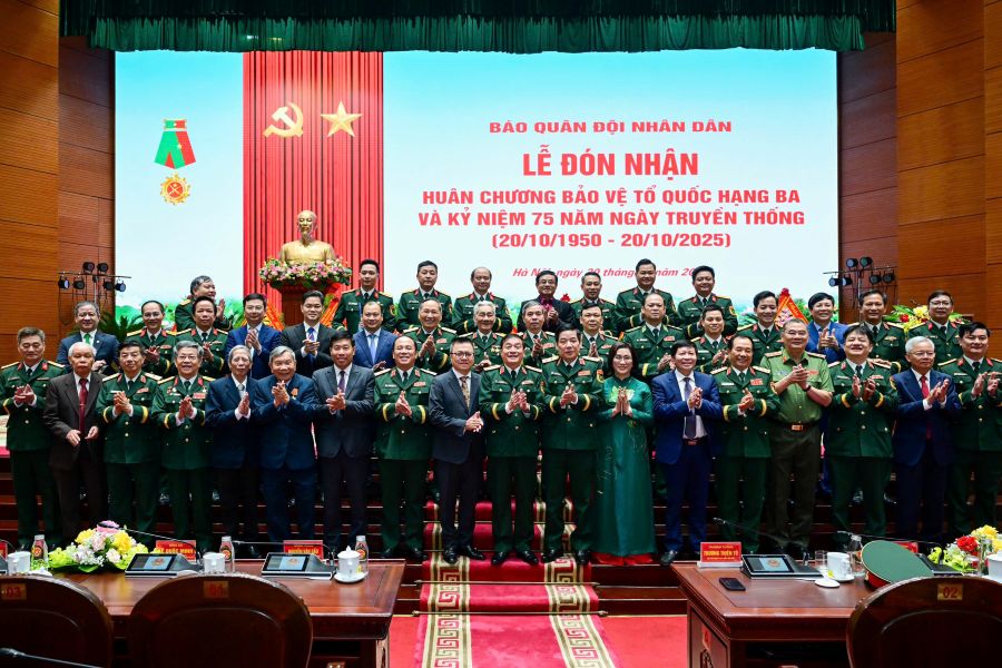 (sav.gov.vn) - Sáng 20/10, tại Hà Nội, Báo Quân đội nhân dân long trọng tổ chức Lễ kỷ niệm 75 năm Ngày truyền thống (20/10/1950 - 20/10/2025) và đón nhận Huân chương Bảo vệ Tổ quốc hạng Ba.