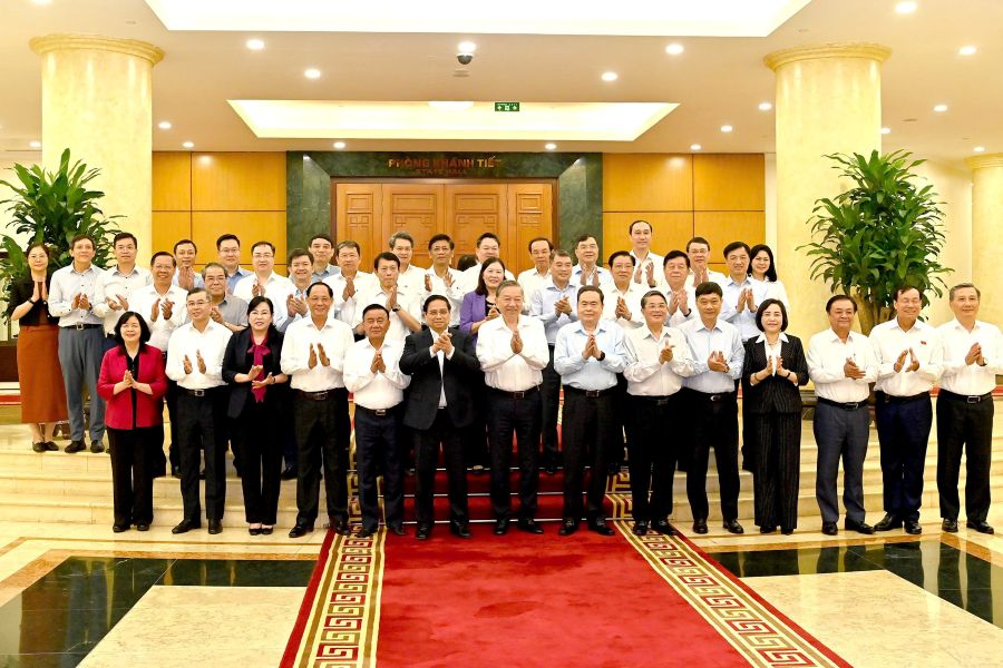 ​Tổng Bí thư Tô Lâm và các đồng chí lãnh đạo Đảng, Nhà nước với Ban Thường vụ Đảng ủy Quốc hội. Ảnh: Duy Linh
