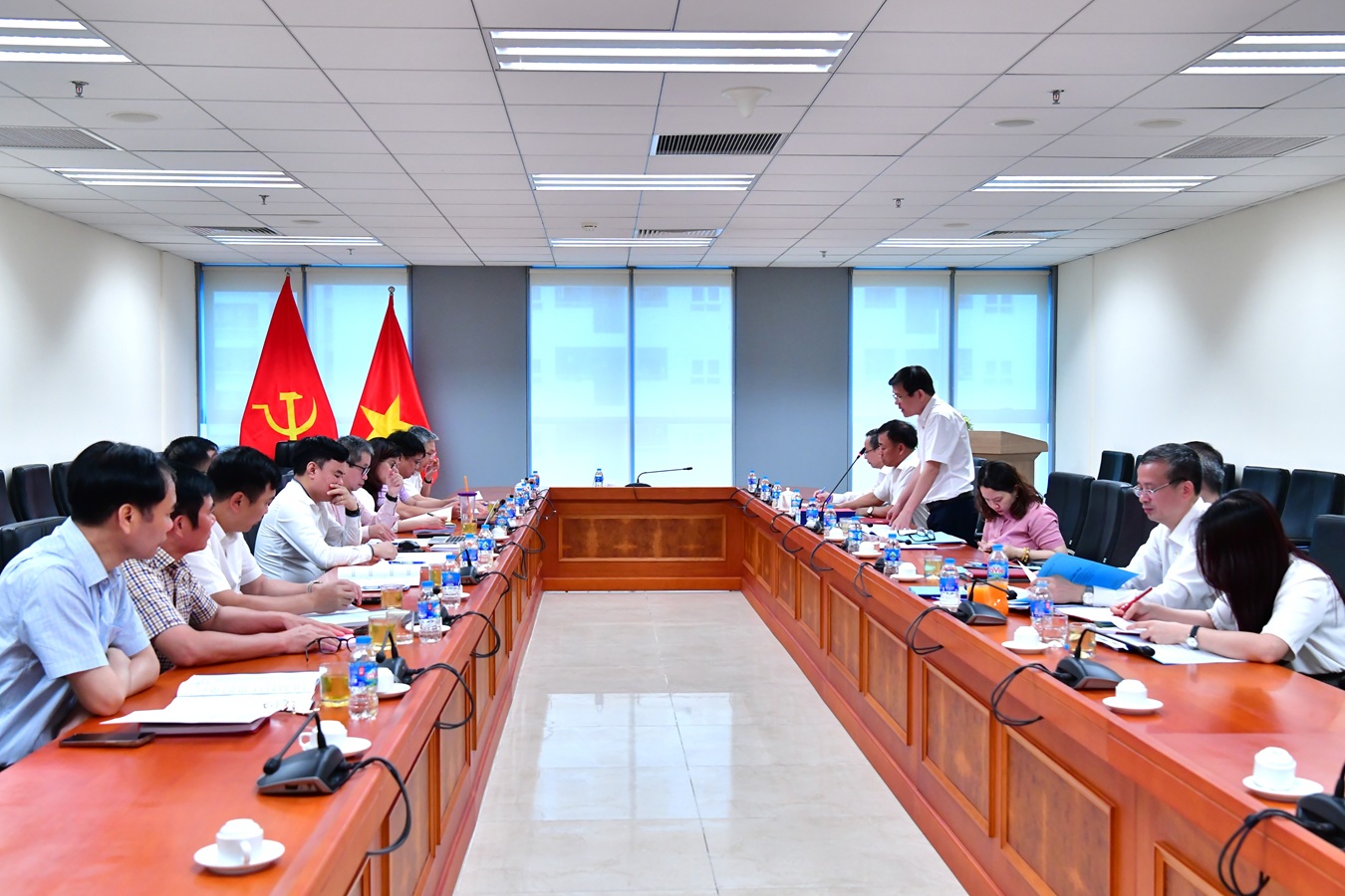 Vụ trưởng Vụ Chế độ và Kiểm soát chất lượng kiểm toán Nguyễn Lương Thuyết - Trưởng Ban rà soát chủ trì cuộc họp, cùng tham dự có các thành viên Ban rà soát.