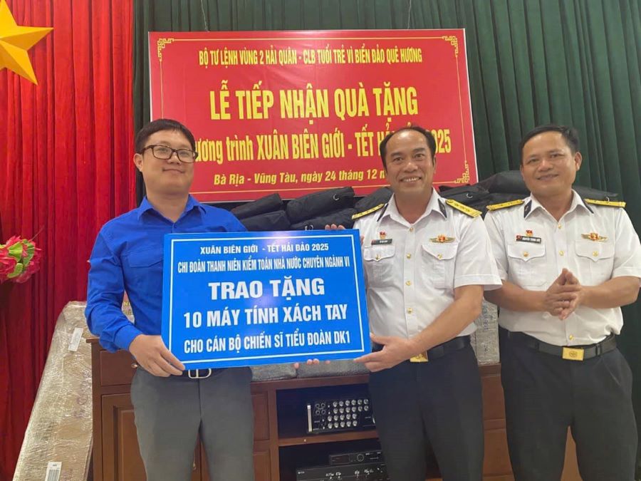 (sav.gov.vn) - Chi đoàn Kiểm toán nhà nước (KTNN) chuyên ngành Ia vừa phối hợp với một số đơn vị trao quà tham gia Chương trình "Xuân biên giới - Tết hải đảo" tặng quà cho các cán bộ, chiến sỹ nhà giàn DK1 nhân dịp Tết nguyên đán Ất Tỵ năm 2025.