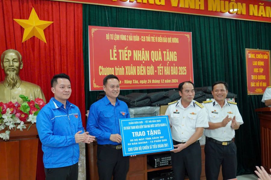 Cụ thể, ngày 24/12, Chi đoàn KTNN chuyên ngành Ia do đồng chí Lê Đức Trọng - Bí thư Chi đoàn KTNN chuyên ngành Ia - làm Trưởng đoàn phối hợp với Chi đoàn KTNN chuyên ngành VI, Đoàn Thanh niên Trường Đại học Công nghệ thông tin - Đại học Quốc gia TP. Hồ Chí Minh tham gia Chương trình "Xuân biên giới - Tết hải đảo" tặng quà cho các cán bộ, chiến sỹ nhà giàn DK1 nhân dịp Tết nguyên đán Ất Tỵ năm 2025.