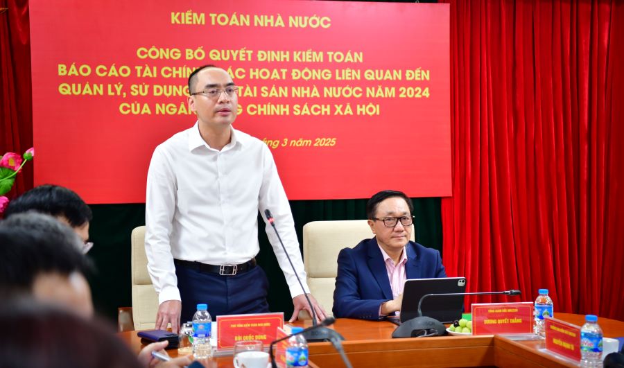 Tại Hội nghị, Kiểm toán trưởng KTNN chuyên ngành VII Vũ Văn Cường đã công bố Quyết định số 331/QĐ-KTNN ngày 11/3/2025 của Tổng Kiểm toán nhà nước về kiểm toán Báo cáo tài chính, các hoạt động liên quan đến quản lý, sử dụng vốn, tài sản nhà nước năm 2024 của Ngân hàng Chính sách xã hội.
