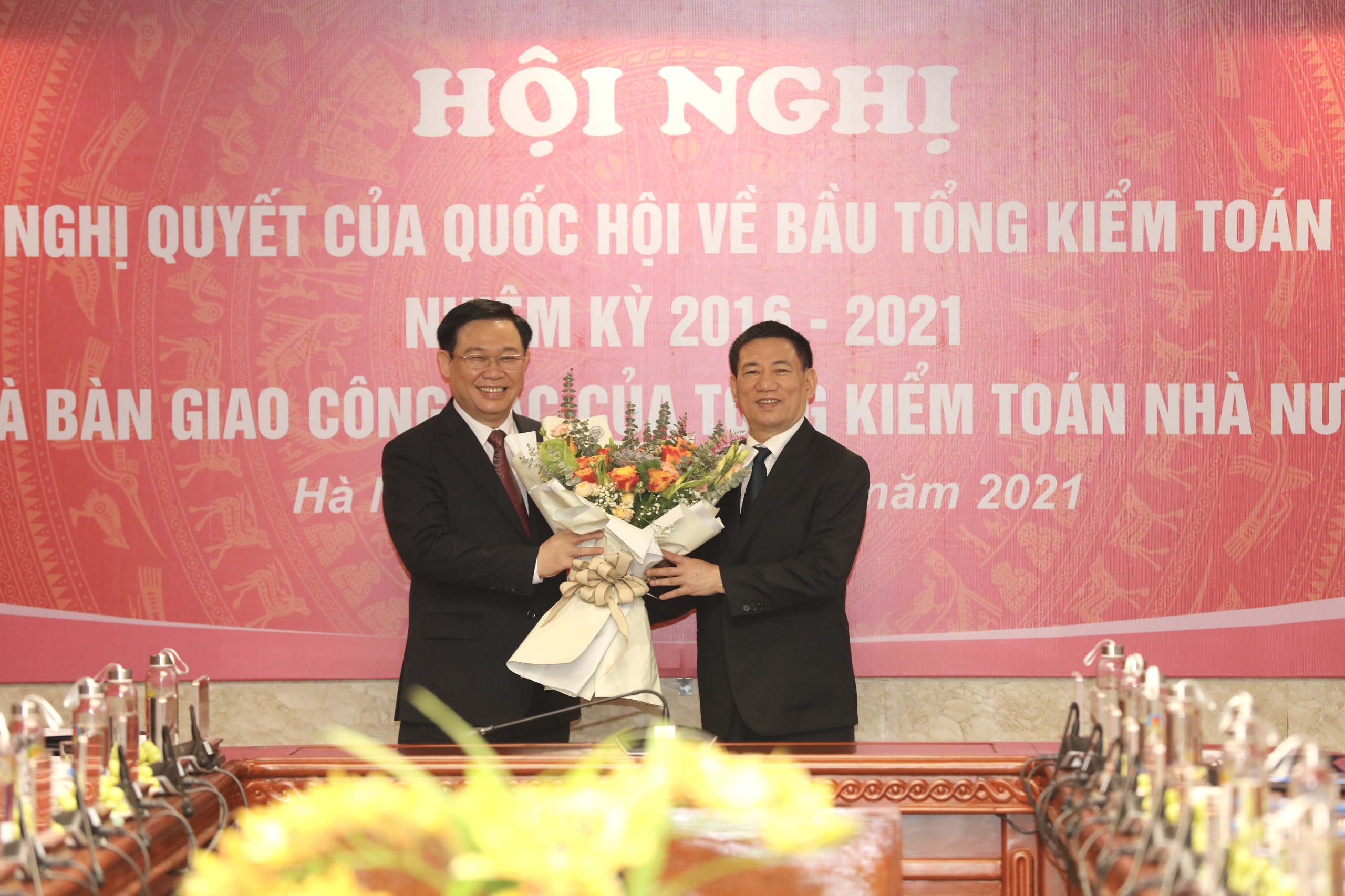 Phát biểu tại buổi Lễ, Chủ tịch Quốc hội Vương Đình Huệ chúc mừng đồng chí Trần Sỹ Thanh đã được Quốc hội tín nhiệm bầu giữ chức Tổng Kiểm toán nhà nước nhiệm kỳ 2016-2021; nguyên Tổng Kiểm toán nhà nước Hồ Đức Phớc được Thủ tướng giới thiệu, Quốc hội phê chuẩn bổ nhiệm chức vụ Bộ trưởng Bộ Tài chính.