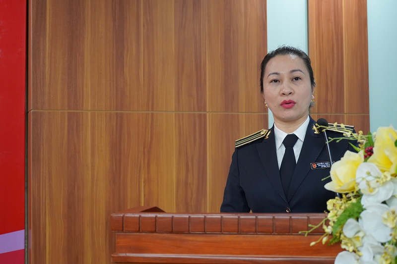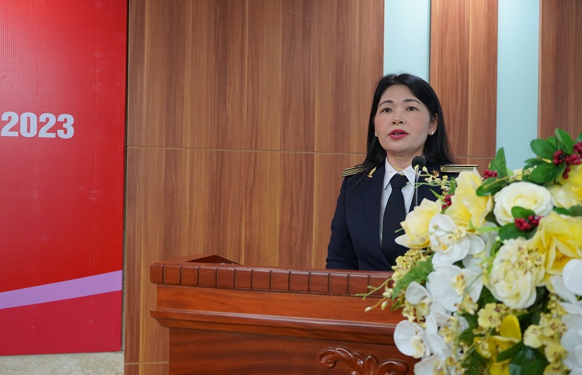 Phó Chánh Văn phòng Đảng - Đoàn thể Nguyễn Thị Thuý Nhàn báo cáo kết quả công tác công đoàn năm 2022, phương hướng nhiệm vụ năm 2023