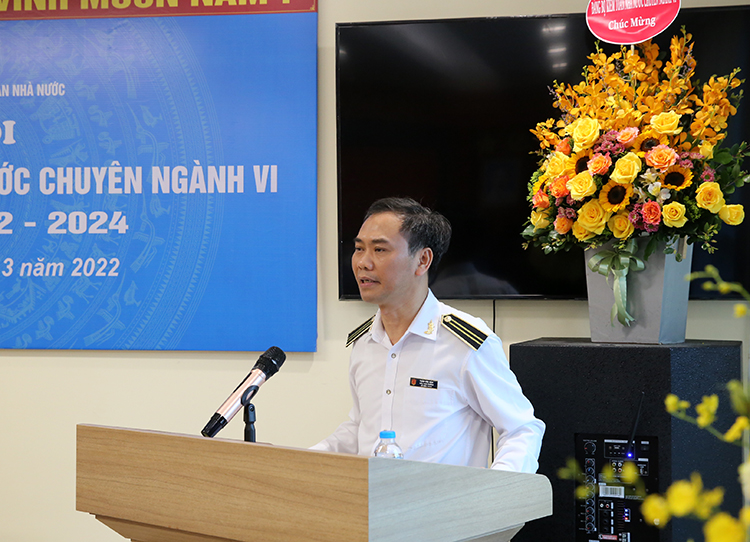 Ủy viên Ban Thường vụ, Trưởng Ban tuyên giáo Đoàn Thanh niên KTNN Lê Mạnh Cường chúc mừng các thành tích Chi đoàn KTNN chuyên ngành VI đã đạt được trong nhiệm kỳ 2019-2022