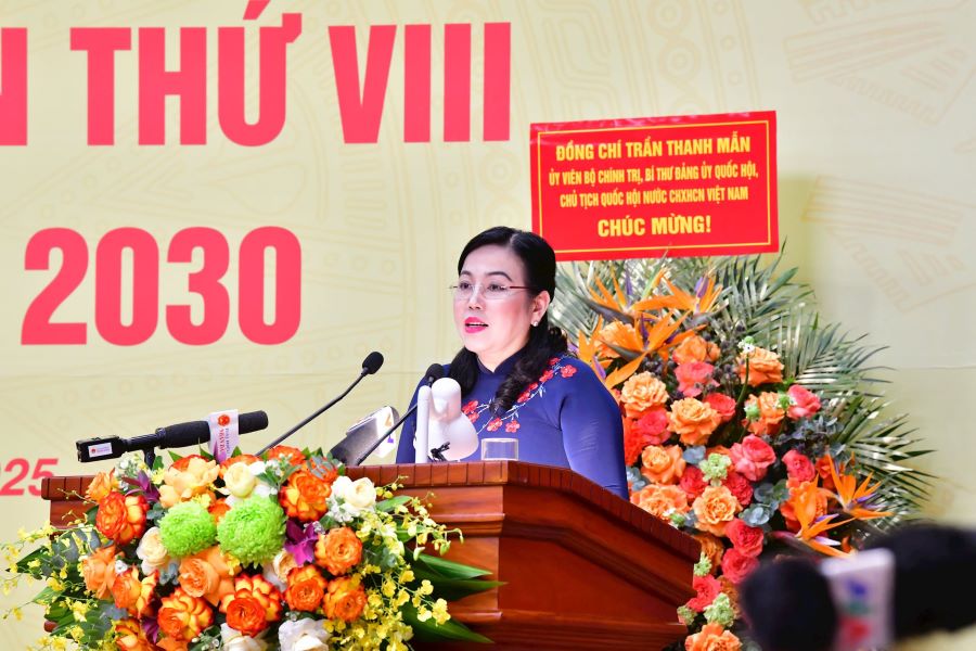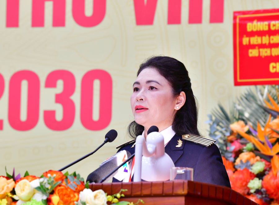 Đồng chí Hà Thị Mỹ Dung - Ủy viên Ban Chấp hành Đảng bộ Quốc hội, Phó Bí thư Đảng ủy, Phó Tổng Kiểm toán nhà nước - trình bày Báo cáo kiểm điểm của Ban Chấp hành Đảng bộ Kiểm toán nhà nước khóa VII, nhiệm kỳ 2020 - 2025