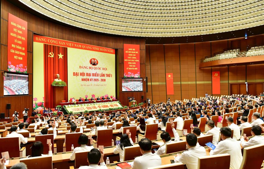 Đại hội đại biểu Đảng bộ Quốc hội lần thứ I, nhiệm kỳ 2025-2030 diễn ra trong 2 ngày 24 và 25/9, tại Hội trường Diên Hồng, Nhà Quốc hội, Thủ đô Hà Nội, với sự tham dự của 298 đại biểu chính thức, là các đảng viên tiêu biểu đại diện cho 2.804 đảng viên đang sinh hoạt tại 11 đảng bộ trực thuộc Đảng bộ Quốc hội.