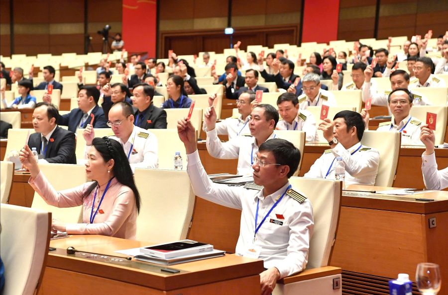 Quốc hội đã tiến hành sửa đổi, bổ sung Hiến pháp và ban hành số lượng kỷ lục các luật, nghị quyết để thể chế hóa kịp thời các chủ trương, Nghị quyết chiến lược của Trung ương, Bộ Chính trị, nhất là các chủ trương về sắp xếp lại đơn vị hành chính cấp tỉnh, tổ chức chính quyền địa phương theo mô hình 2 cấp; đột phá phát triển khoa học, công nghệ; đổi mới sáng tạo; chuyển đổi số quốc gia; kinh tế tư nhân; xây dựng và thi hành pháp luật...