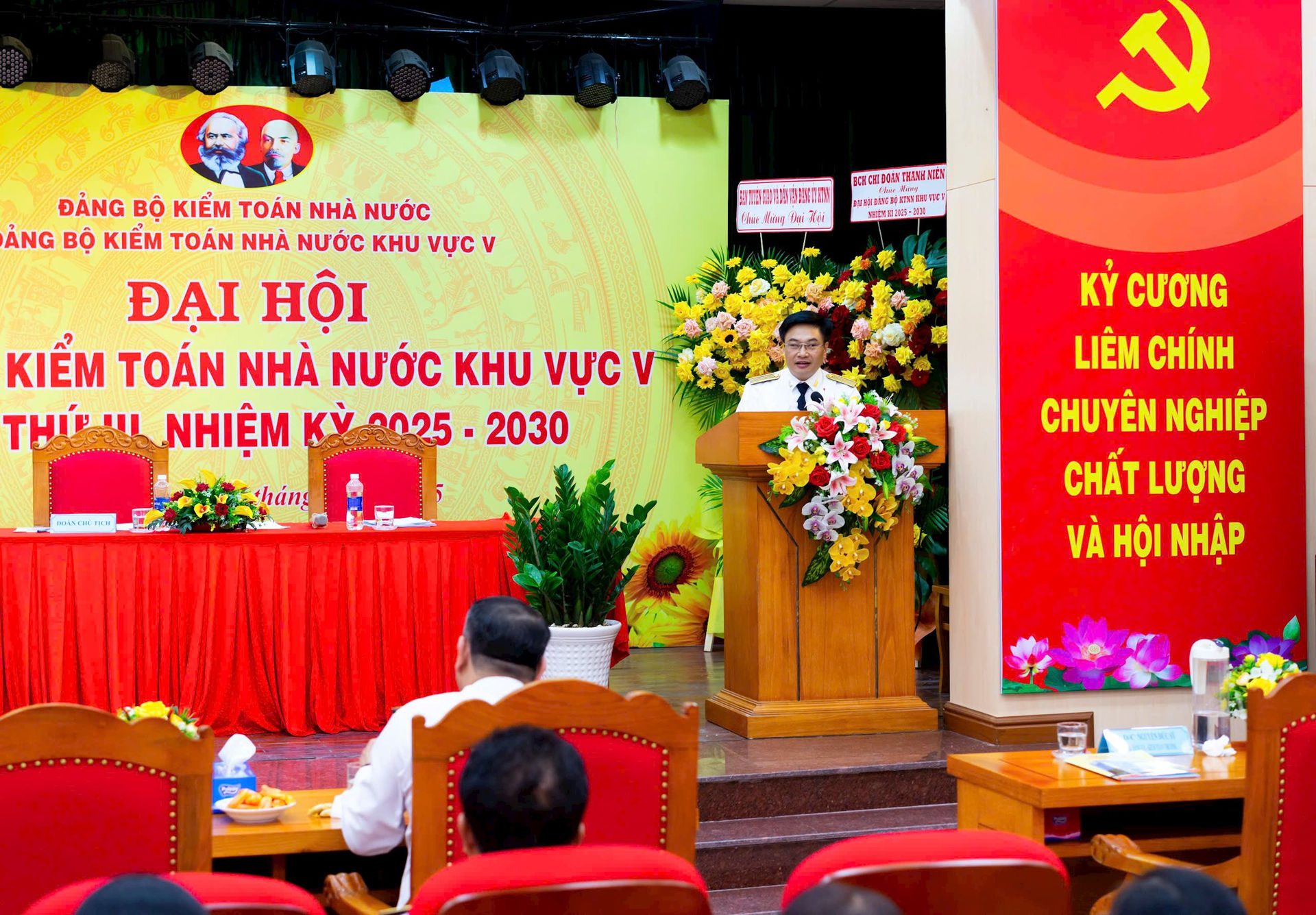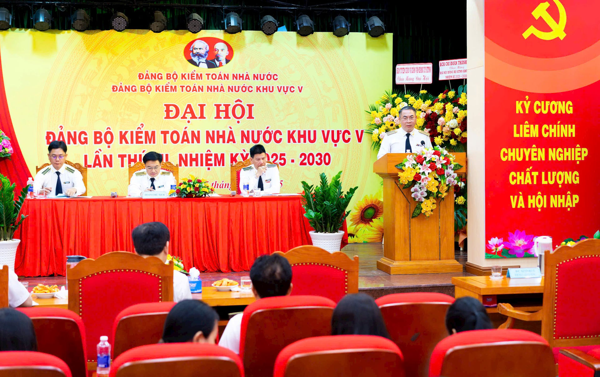 Tham dự Đại hội có đại diện các ban Đảng của Đảng ủy KTNN; đại diện cấp ủy, lãnh đạo các chi bộ, đảng bộ trực thuộc Đảng bộ KTNN cùng toàn thể đảng viên của Đảng bộ KTNN khu vực V.