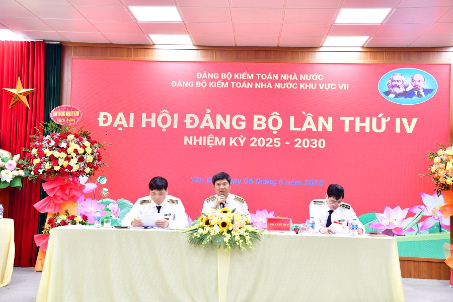 (sav.gov.vn) - Chiều 6/5 tại trụ sở Kiểm toán nhà nước (KTNN) khu vực VII (TP. Yên Bái, tỉnh Yên Bái) đã diễn ra Đại hội Đảng bộ KTNN khu vực VII lần thứ IV, nhiệm kỳ 2025-2030. Đồng chí Hà Thị Mỹ Dung - Ủy viên Ban Chấp hành Đảng bộ Quốc hội, Phó Bí thư Đảng ủy KTNN, Phó Tổng Kiểm toán nhà nước dự và chỉ đạo Đại hội.