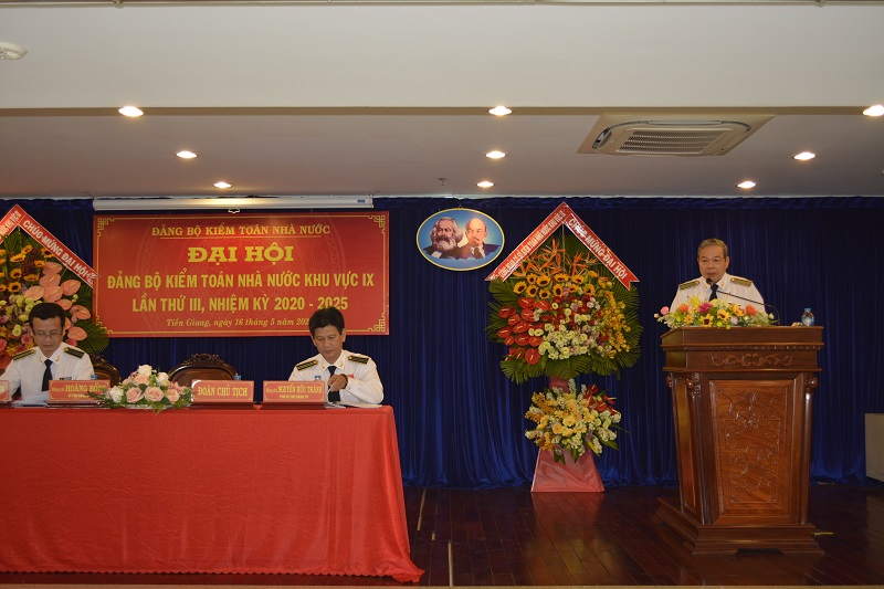 Phát biểu chỉ đạo Đại hội, Ủy viên Ban Thường vụ Đảng ủy KTNN - đồng chí Doãn Anh Thơ biểu dương và đánh giá cao những kết quả Đảng bộ KTNN khu vực IX đạt được trong nhiệm kỳ qua, đặc biệt trong công tác xây dựng Đảng và kết quả thực hiện nhiệm vụ chuyên môn ngày càng được nâng cao. Đồng chí cũng lưu ý một số vấn đề Đảng bộ cần tập trung lãnh đạo, chỉ đạo thực hiện trong thời gian tới như: Bám sát chỉ đạo, chủ trương của Đảng ủy cấp trên; tăng cường đào tạo, nâng cao chất lượng cán bộ, công chức; ứng dụng công nghệ trong hoạt động kiểm toán; tiếp tục quan tâm đến công tác xây dựng kế hoạch kiểm toán; nâng cao chất lượng kết quả, kiến nghị kiểm toán.