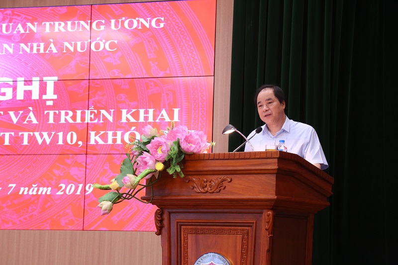 Phát biểu khai mạc Hội nghị, Bí thư Đảng ủy, Tổng Kiểm toán nhà nước Hồ Đức Phớc cho biết: Hội nghị lần thứ 10 Ban Chấp hành Trung ương Đảng khóa XII đã họp từ ngày 16-18/5/2019 với tinh thần nghiêm túc, dân chủ và trách nhiệm. Hội nghị đã thảo luận, cho ý kiến về Báo cáo tổng kết thực hiện Chỉ thị số 36-CT/TW của Bộ Chính trị khoá XI về đại hội đảng bộ các cấp tiến tới Đại hội đại biểu toàn quốc lần thứ XII của Đảng và dự thảo Chỉ thị của Bộ Chính trị khoá XII về đại hội đảng bộ các cấp tiến tới Đại hội đại biểu toàn quốc lần thứ XIII của Đảng. Đồng thời, Hội nghị đã xem xét, thảo luận về nội dung báo cáo các công việc quan trọng Bộ Chính trị đã giải quyết từ sau Hội nghị Trung ương 9 đến Hội nghị Trung ương 10 khoá XII và một số vấn đề quan trọng khác.