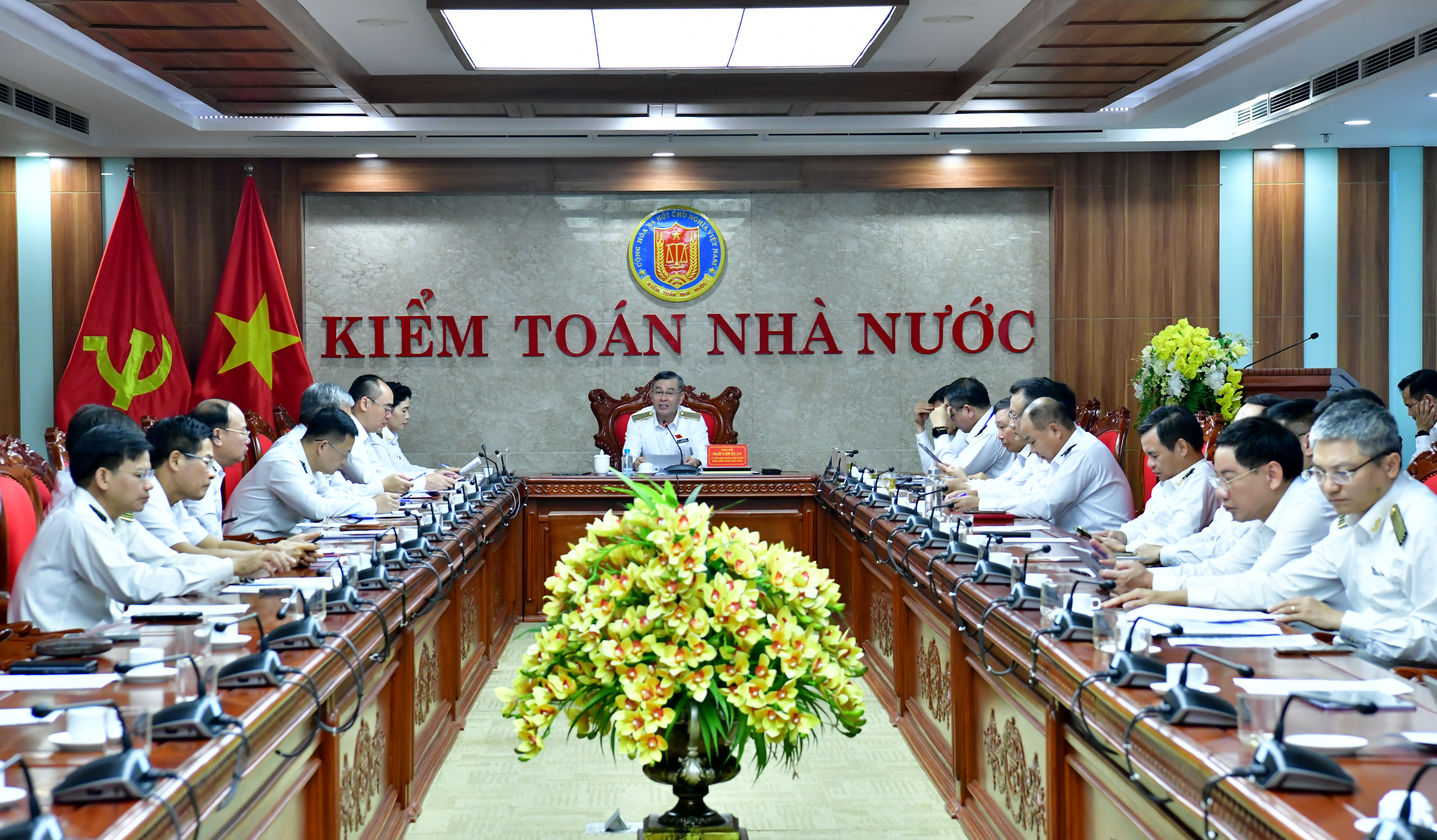 Bí thư Đảng ủy, Tổng Kiểm toán nhà nước Ngô Văn Tuấn - Tổ trưởng Tổ thảo luận số 1 chủ trì cuộc thảo luận của Đoàn đại biểu Đảng bộ Kiểm toán nhà nước (KTNN); cùng tham dự phiên thảo luận có các đại biểu thuộc Đảng bộ KTNN được Đảng ủy Quốc hội chỉ định tại Quyết định số 121-QĐ/ĐUQH ngày 21/8/2025 và Công văn số 353-CV/ĐƯ ngày 16/9/2025.
