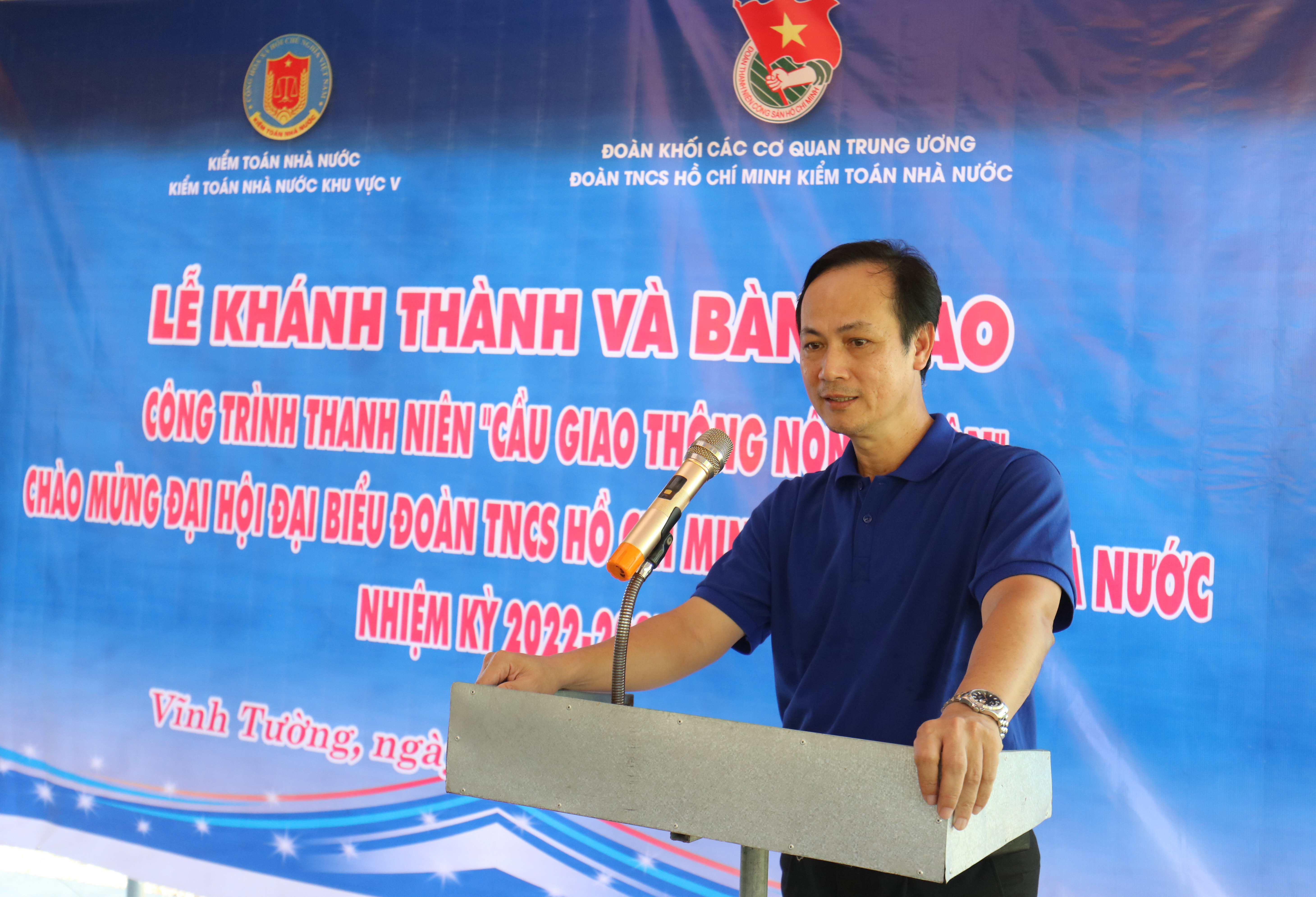 Phát biểu tại buổi Lễ, Bí thư Đoàn Thanh niên KTNN Ngô Đạt Trí cho biết, Cầu kênh Năm trăm ấp Tân Long là công trình trọng điểm của Đoàn Thanh niên KTNN chào mừng Đại hội đại biểu Đoàn Thanh niên KTNN lần thứ X, nhiệm kỳ 2022-2027. Công trình được Đoàn Thanh niên KTNN giao Chi đoàn KTNN khu vực V có trụ sở tại thành phố Cần Thơ làm đầu mối thực hiện và được hoàn thành sau gần 04 tháng thi công, xây dựng.