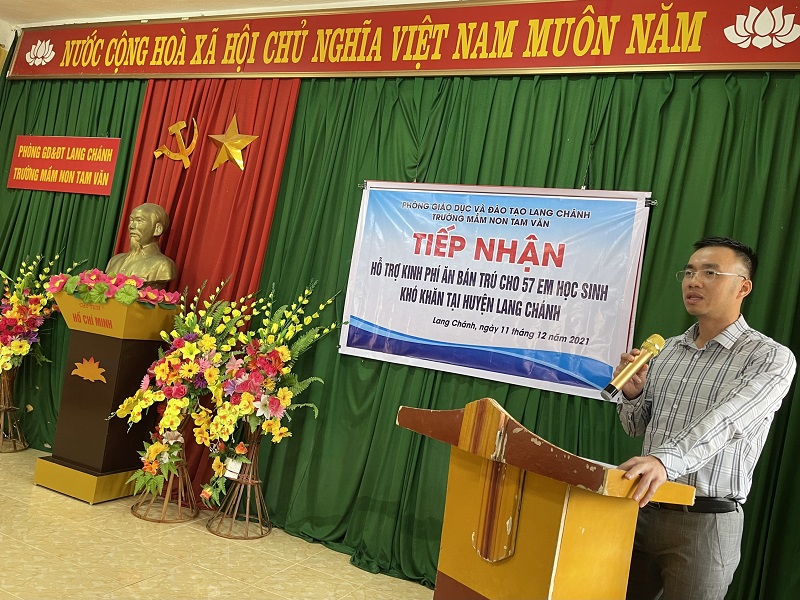 Trường mầm non Tam Văn nằm trên địa bàn còn nhiều khó khăn của huyện Lang Chánh với trên 200 học sinh, phần lớn là con em dân tộc thiểu số, nhà ở cách xa trường học nên hầu hết phải học bán trú. Tuy vậy, điều kiện sinh hoạt, học tập tại trường còn nhiều thiếu thốn, nhất là việc tổ chức ăn bán trú. Trước những khó khăn đó Nhà trường đã kết nối với các nhà hảo tâm nhằm hỗ trợ, chia sẻ với những em học sinh có hoàn cảnh khó khăn.
