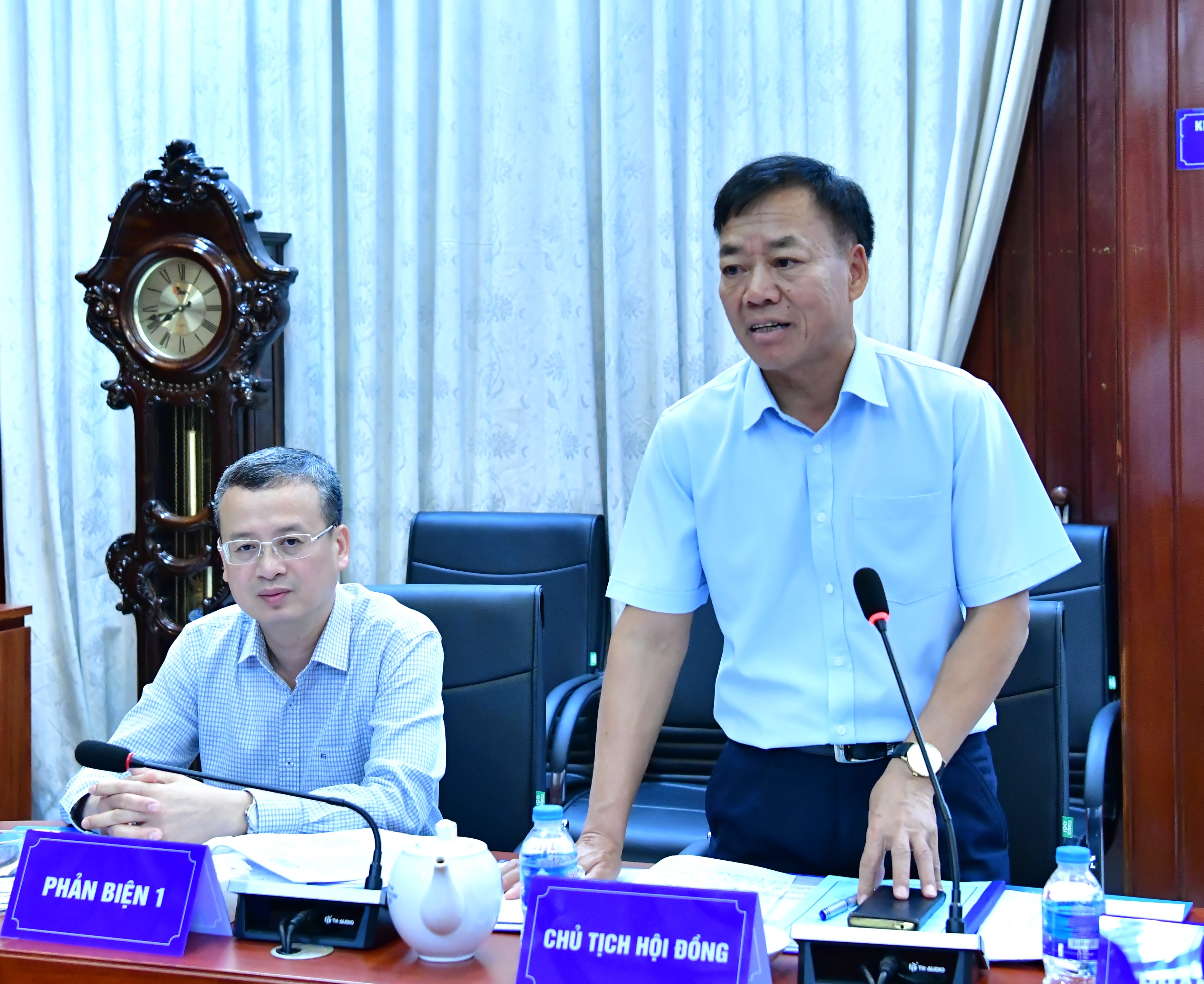Ths. Trần Kim Lộc - Giám đốc Trường Đào tạo và Bồi dưỡng nghiệp vụ kiểm toán làm Chủ tịch Hội đồng nghiệm thu, cùng tham dự có các thành viên trong Hội đồng nghiệm thu và Ban đề tài.