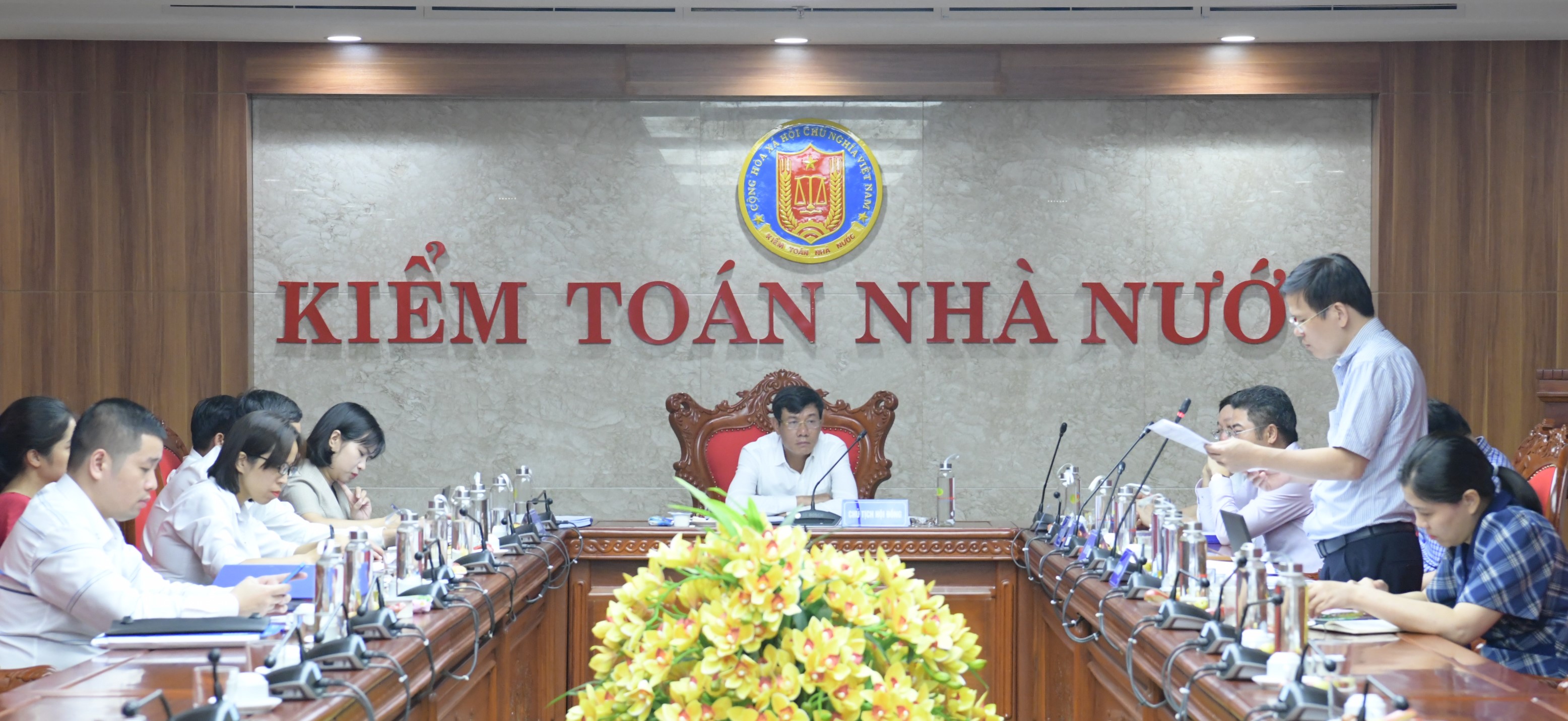 Phó Tổng Kiểm toán nhà nước Doãn Anh Thơ làm Chủ tịch Hội đồng nghiệm thu; cùng tham dự có các thành viên trong Hội đồng và Ban Đề tài.