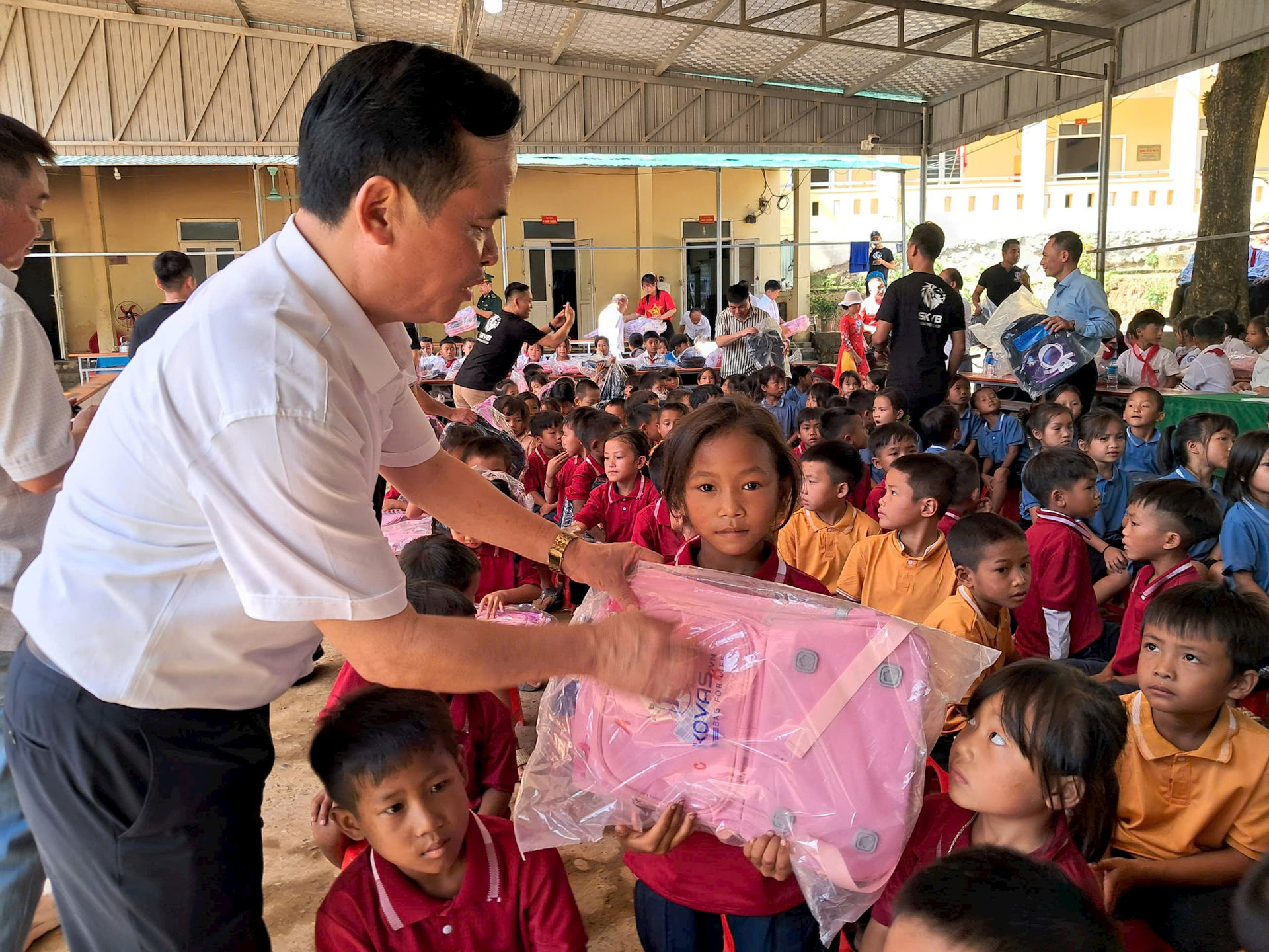 Dịp này, Câu lạc bộ Doanh nhân Diamond Club cũng trao gần 320 chiếc cặp sách và đồ dùng học tập cho các em học sinh Trường Phổ thông Dân tộc bán trú Tiểu học Bắc Lý 2.