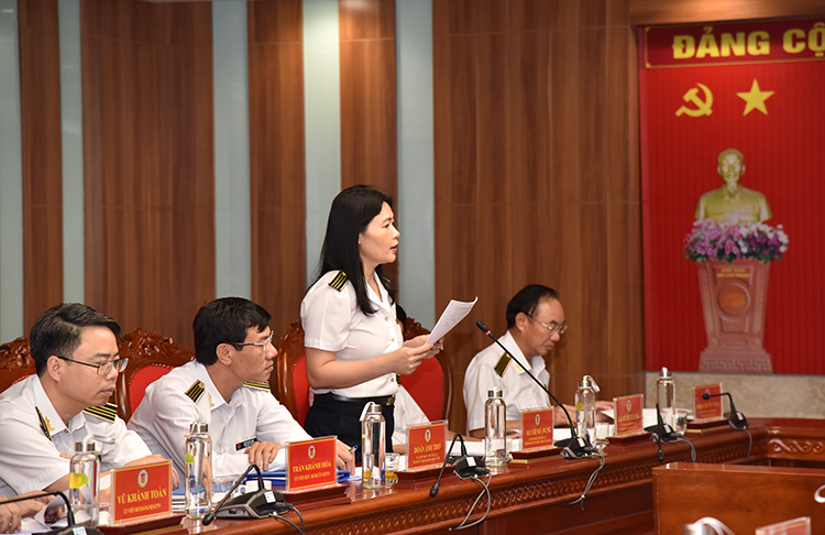 Đồng chí Hà Thị Mỹ Dung, Ủy viên Ban Thường vụ, Trưởng Ban Tổ chức Đảng ủy KTNN báo cáo