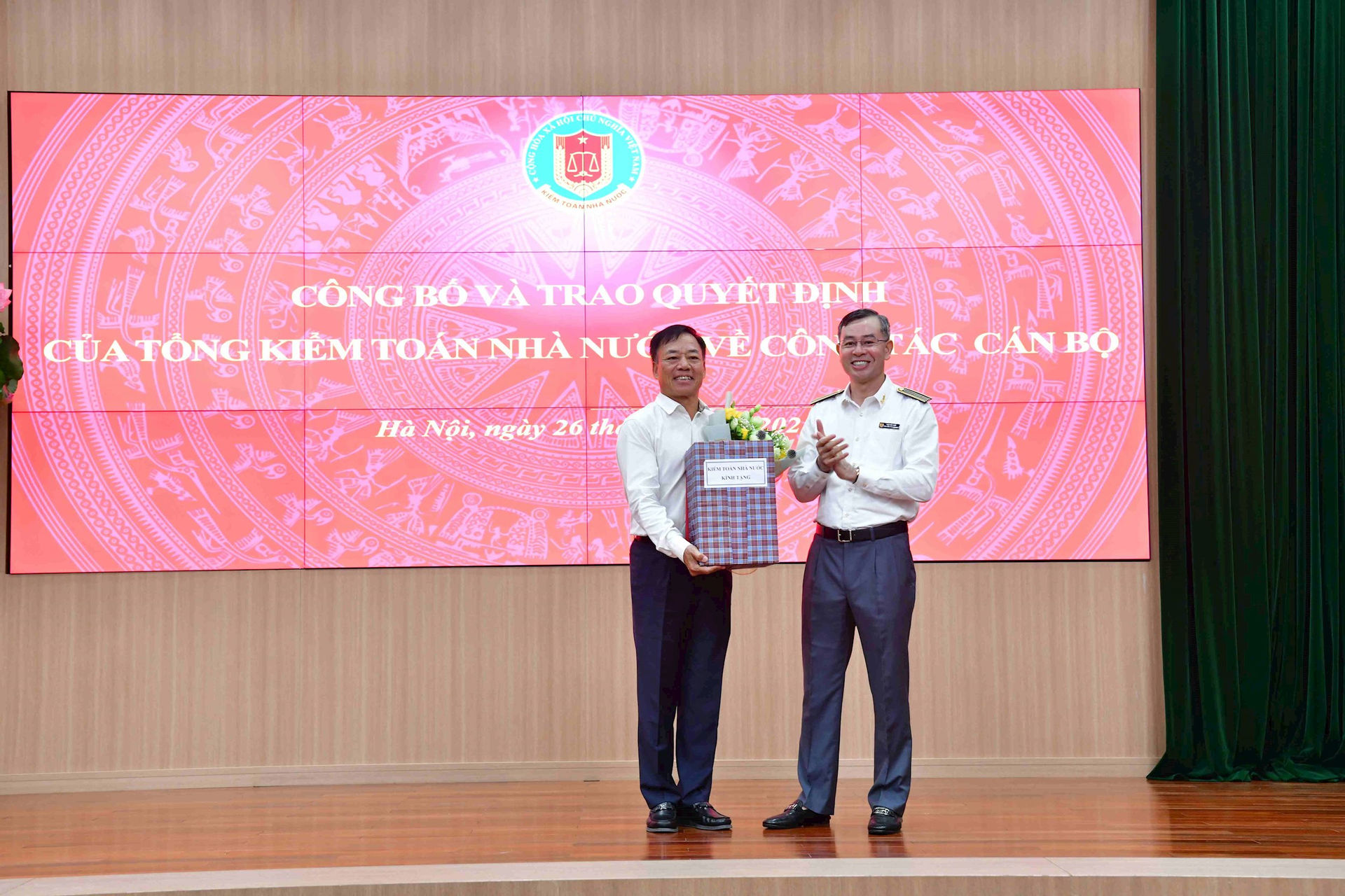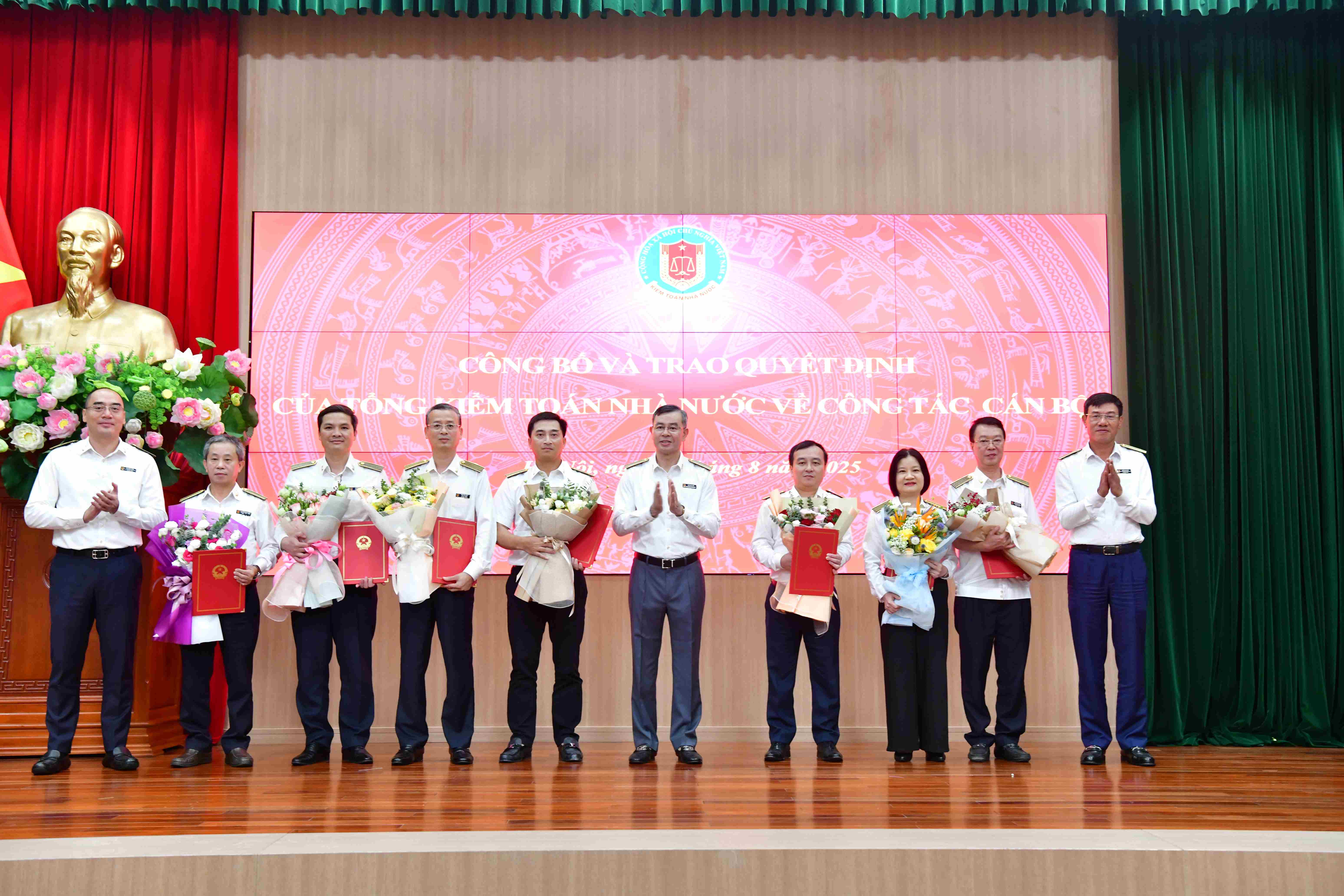 Lãnh đạo Kiểm toán nhà nước tặng hoa, chúc mừng các công chức cấp Vụ được điều động, bổ nhiệm