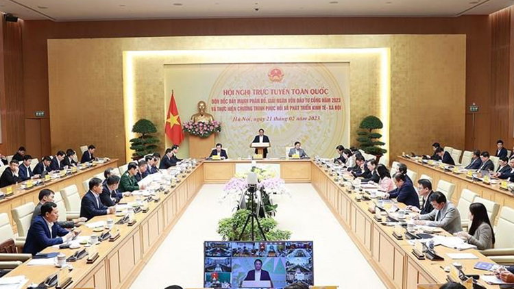 (sav.gov.vn) - Ngày 21/2/2022, tại trụ sở Chính phủ, Ba Đình, Hà Nội, Thủ tướng Chính phủ Phạm Minh Chính đã chủ trì Hội nghị trực tuyến toàn quốc đôn đốc đẩy mạnh phân bổ, giải ngân vốn đầu tư công và thực hiện Chương trình phục hồi và phát triển kinh tế-xã hội (KT-XH).