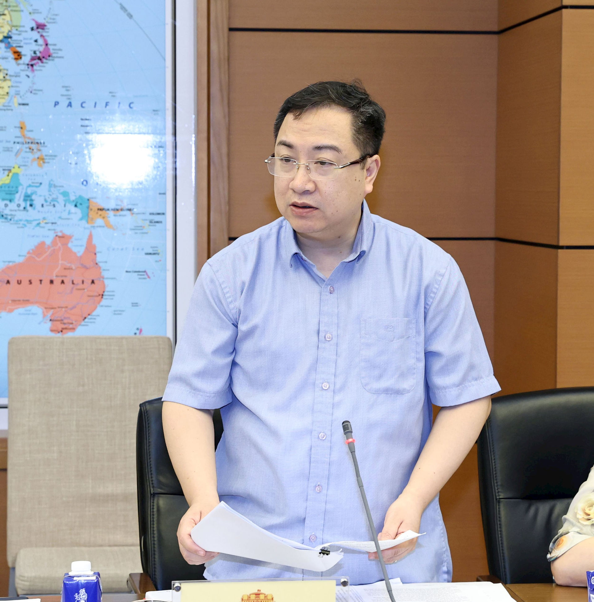 Phó Trưởng ban Tuyên giáo và Dân vận Đảng ủy Quốc hội Nguyễn Trung Hiếu trình bày Dự thảo Tờ trình