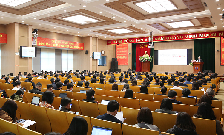 (sav.gov.vn) - Chiều 14/2/2022, tại trụ sở Kiểm toán nhà nước (KTNN) – 116 Nguyễn Chánh, Hà Nội, KTNN đã tổ chức Hội nghị trực tuyến phổ biến các Nghị quyết được Quốc hội thông qua tại Kỳ họp bất thường lần thứ Nhất, Quốc hội Khóa XV. Ủy viên Ban cán sự Đảng, Trưởng Ban Dân vận Đảng ủy, Phó Tổng Kiểm toán nhà nước Hà Thị Mỹ Dung dự và phát biểu khai mạc Hội nghị.