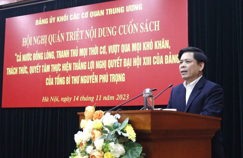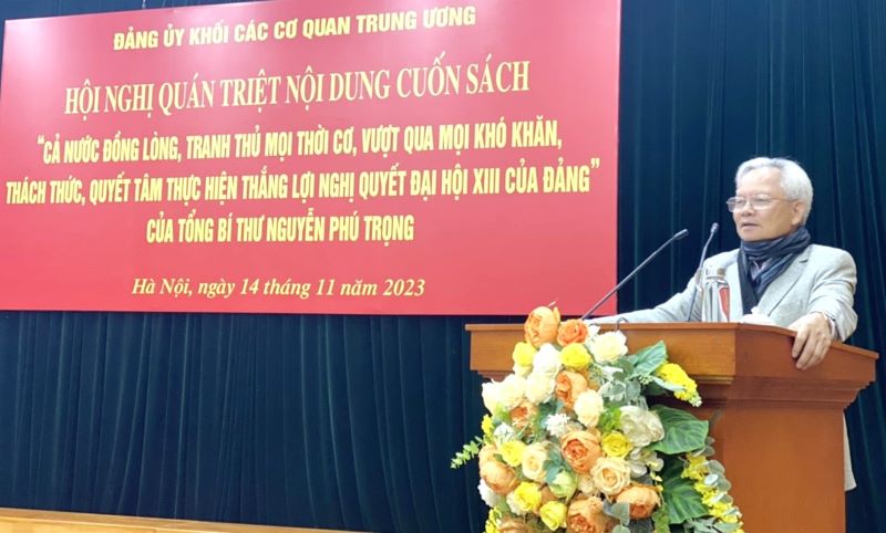Phát biểu chỉ đạo tại Hội nghị, Bí thư Đảng ủy Khối cơ quan Trung ương Nguyễn Văn Thể đề nghị, ngay sau Hội nghị này, các cấp ủy, tổ chức đảng tiếp tục quán triệt, tuyên truyền về nội dung Cuốn sách; tuyên truyền những kết quả đã đạt được nửa đầu nhiệm kỳ qua của Đảng ủy Khối, của các đảng ủy trực thuộc; tuyên truyền, chỉ đạo, định hướng đội ngũ cán bộ, đảng viên, công chức, viên chức, đoàn viên, hội viên và người lao động trong Đảng bộ Khối quyết tâm lớn hơn, nỗ lực cao hơn, vượt qua mọi khó khăn, đoàn kết, tranh thủ mọi thời cơ, mọi điều kiện thuận lợi để triển khai thực hiện tốt các chương trình, kế hoạch, mục tiêu, nhiệm vụ đã đề ra trong nhiệm kỳ khóa XIII.