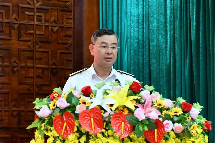 Kiểm toán trưởng KTNN khu vực XII Phạm Văn Học trình bày báo cáo tại hội nghị