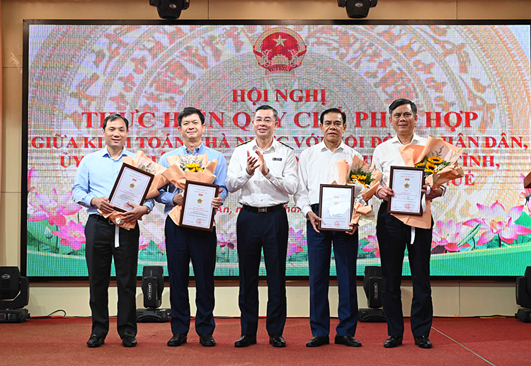 Tại hội nghị, KTNN đã tiến hành ký QCPHCT giữa KTNN với Thường trực HĐND, UBND các tỉnh Hà Tĩnh, Quảng Bình, Quảng Trị, Thừa Thiên Huế trên cơ sở sửa đổi, bổ sung QCPHCT đã ký kết ký kết vào năm 2021 để phù hợp với các quy định và tình hình mới.