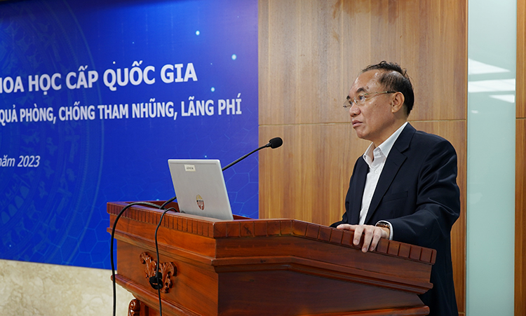 GS,TS. Đoàn Xuân Tiên trình bày cơ sở lý luận về hoàn thiện pháp luật KTNN nhằm nâng cao hiệu lực, hiệu quả phòng, chống tham nhũng, tiêu cực, lãng phí ở Việt Nam