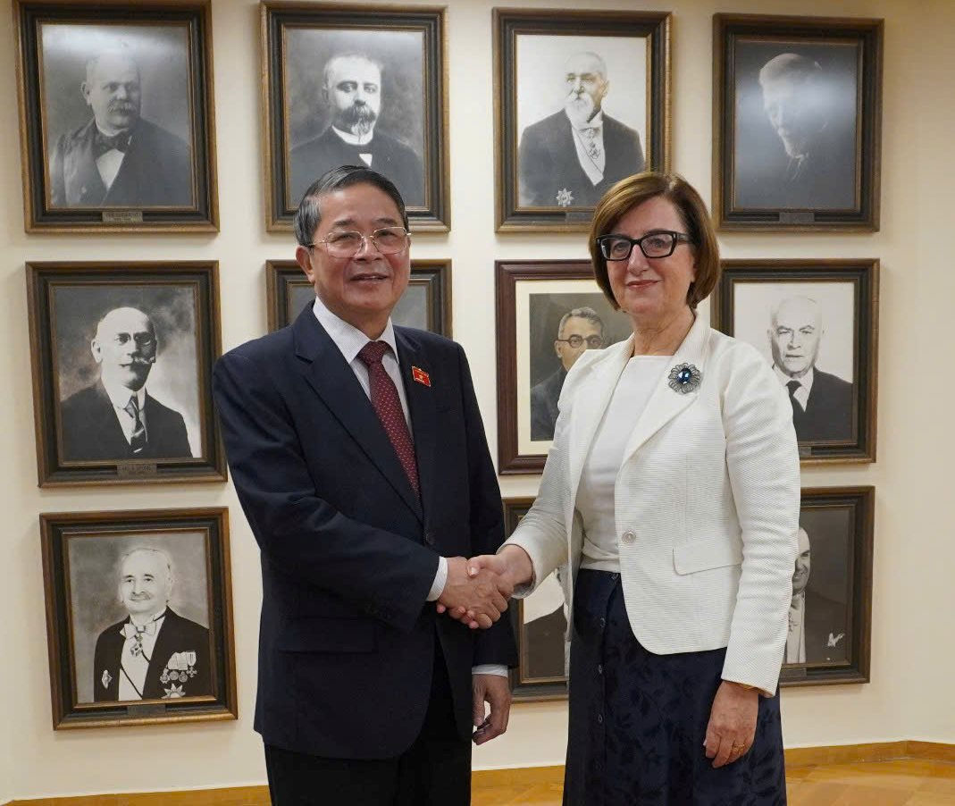 Phó Chủ tịch Quốc hội Nguyễn Đức Hải và Chủ tịch Tòa Thẩm kế Hy Lạp Sotiria Ntouni. Ảnh: CTV