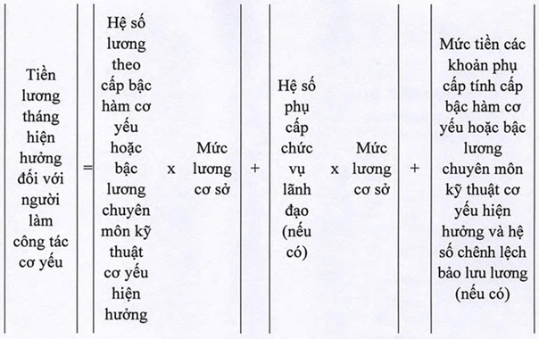 - Công thức tính tiền lương tháng hiện hưởng với người làm công tác cơ yếu: