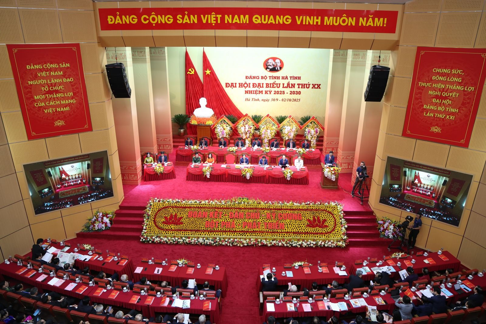 Đảng bộ tỉnh Hà Tĩnh xác định mục tiêu nhiệm kỳ 2025-2030 là: Xây dựng Đảng và hệ thống chính trị trong sạch, vững mạnh; công nghiệp, nông nghiệp, dịch vụ phát triển; hệ thống kết cấu hạ tầng đồng bộ, từng bước hiện đại; chủ động ứng phó kịp thời, hiệu quả thiên tai, dịch bệnh và thích ứng với biến đổi khí hậu; phát huy giá trị văn hóa và nguồn nhân lực chất lượng cao; đẩy mạnh chuyển đổi số, mở rộng đối ngoại, củng cố quốc phòng, an ninh; không ngừng nâng cao đời sống vật chất, tinh thần, sức khỏe của nhân dân.