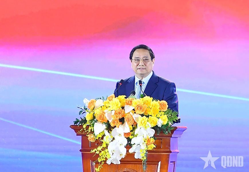 Thủ tướng Chính phủ Phạm Minh Chính phát biểu khai mạc Triển lãm. Ảnh Báo QĐND