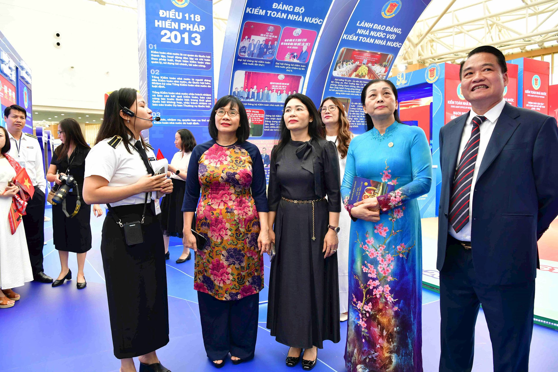 Phó Tổng Kiểm toán nhà nước Hà Thị Mỹ Dung và các đại biểu tham quan Không gian trưng bày của KTNN