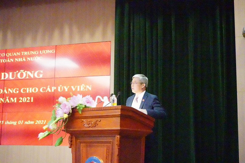 Phát biểu tại lễ khai giảng, đồng chí Nguyễn Tuấn Anh - Phó Bí thư Đảng ủy, Phó Tổng Kiểm toán nhà nước nhấn mạnh: Đại hội đảng bộ các cấp của KTNN, cấp ủy các cấp được kiện toài, tuy nhiên, đa phần các đồng chí trong cấp ủy là kiêm nhiệm. Có đồng chí chưa có cơ hội trực tiếp tham gia giải quyết công việc liên quan đến công tác đảng, chưa có nhiều kinh nghiệm trong công tác này. Do đó, việc bồi dưỡng nghiệp vụ công tác đảng cho cấp ủy viên các cấp là cần thiết. Phát biểu tại lễ khai giảng, đồng chí Trần Thị Mộng Trinh, Phó Bí thư
