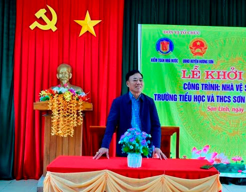 Phát biểu tại Lễ khởi công, Bí thư Đoàn Thanh niên KTNN Lê Mạnh Cường cho biết, thời gian qua, Đoàn Thanh niên KTNN đã đã chủ động phối hợp với KTNN khu vực II (trụ sở tại TP. Vinh, Nghệ An) để khảo sát, nắm bắt cụ thể hiện trạng về hạ tầng cơ sở vật chất trường học, nhu cầu của giáo viên và học sinh. Qua khảo sát, làm việc với các bên liên quan, Đoàn Thanh niên KTNN đã báo cáo Đảng ủy, Lãnh đạo KTNN về tính cấp thiết và ý nghĩa thiết thực của công trình đối với tập thể thầy, trò Trường Tiểu học - Trung học cơ sở Sơn Lĩnh.