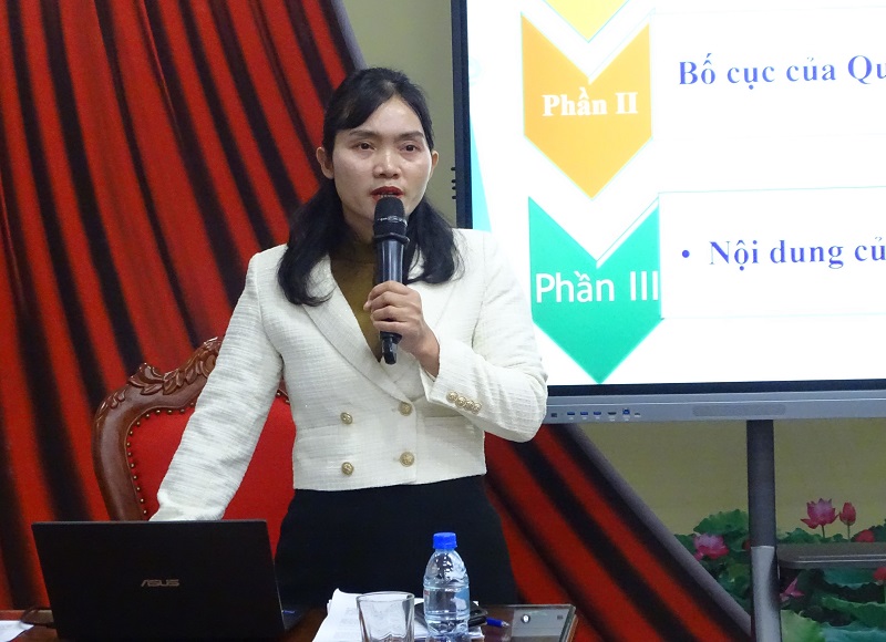 Bà Lê Thị Huyền - Phó Trưởng Phòng Pháp luật, Vụ Pháp chế, KTNN trao đổi tại buổi đào tạo