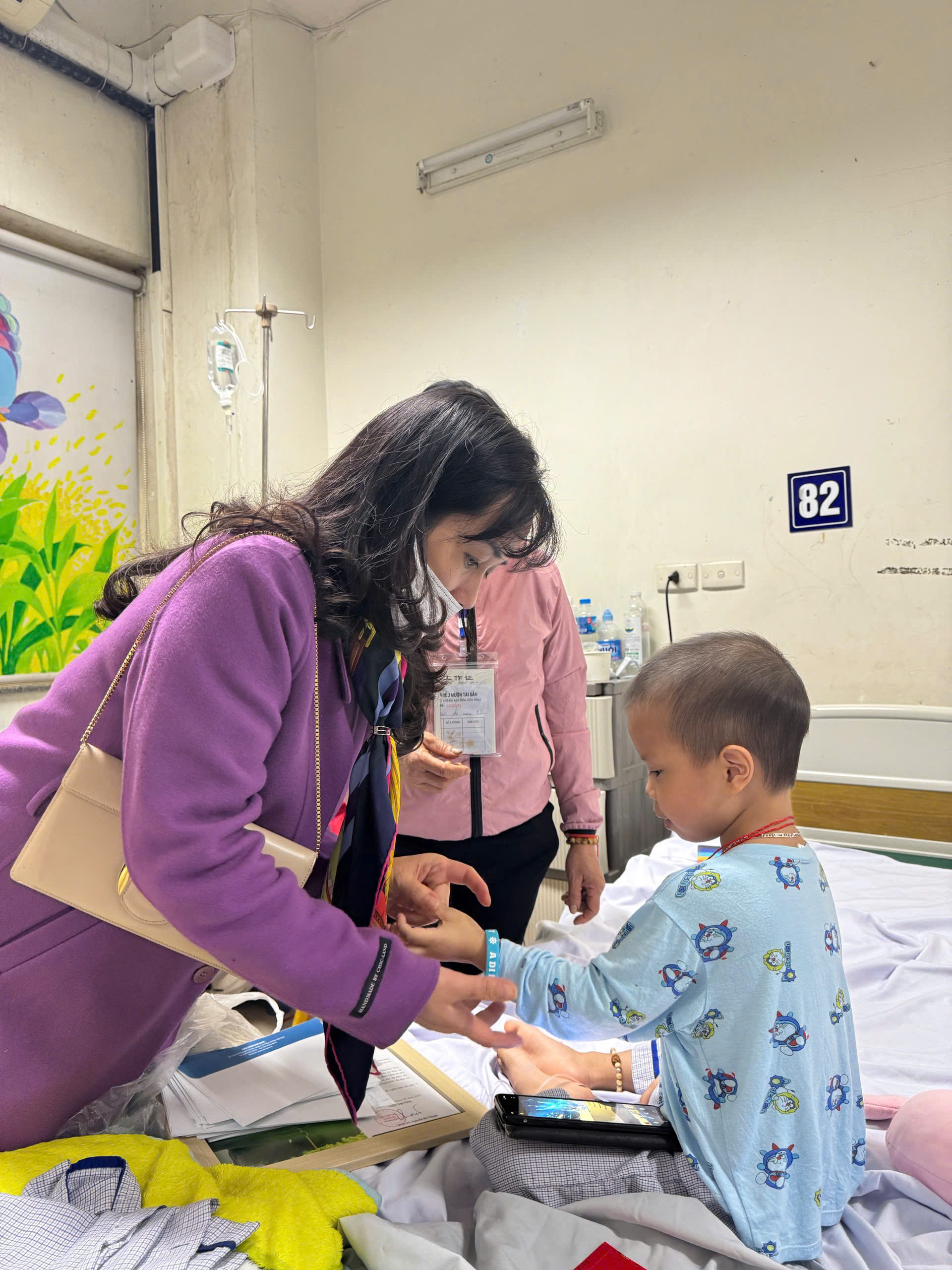 Phó Kiểm toán trưởng KTNN chuyên ngành VII Nguyễn Thu Giang thăm hỏi động, viên bệnh nhi