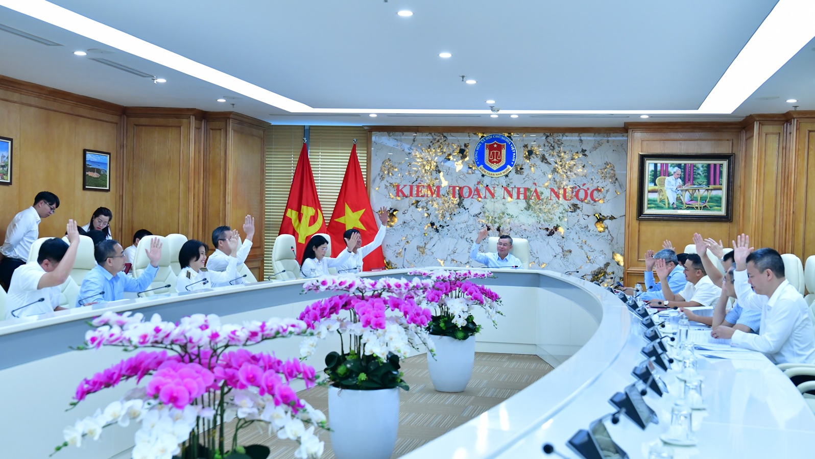 Các thành viên Hội đồng biểu quyết tại cuộc họp. Ảnh: HỒNG NHUNG