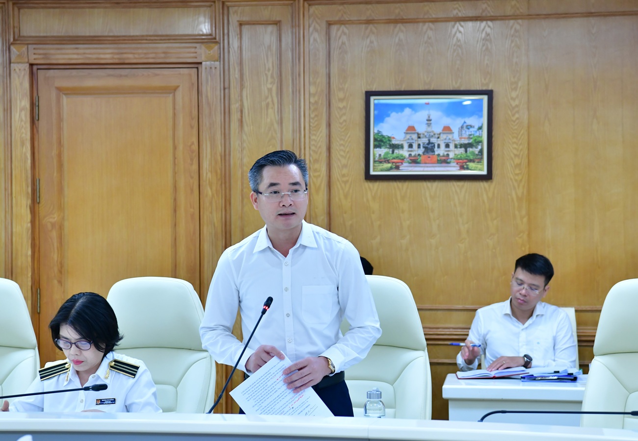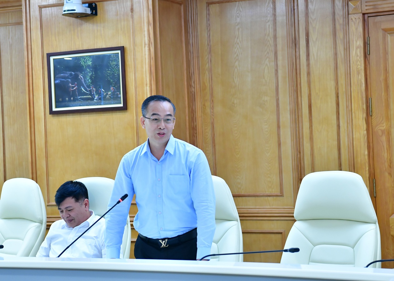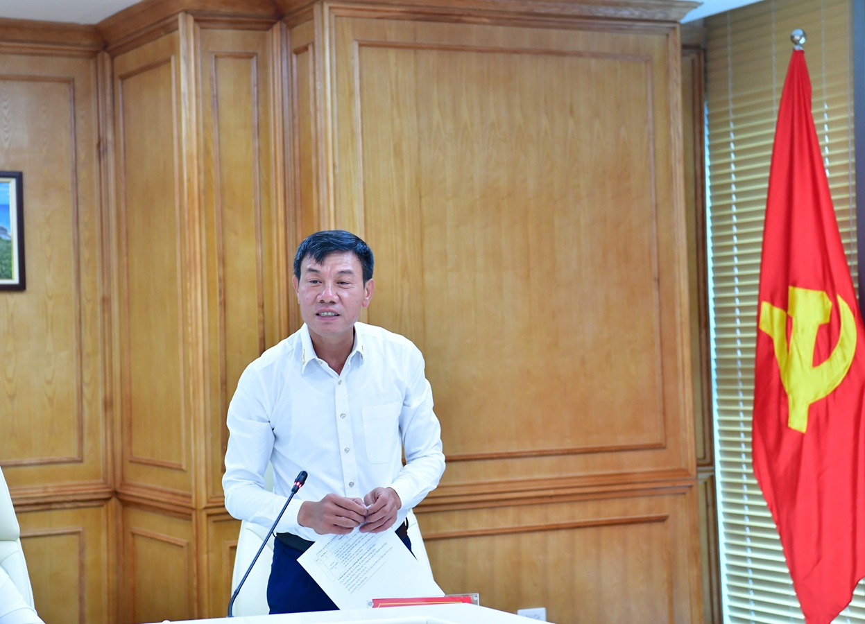 Chánh Văn phòng KTNN Lê Tùng Lâm báo cáo tại cuộc họp.