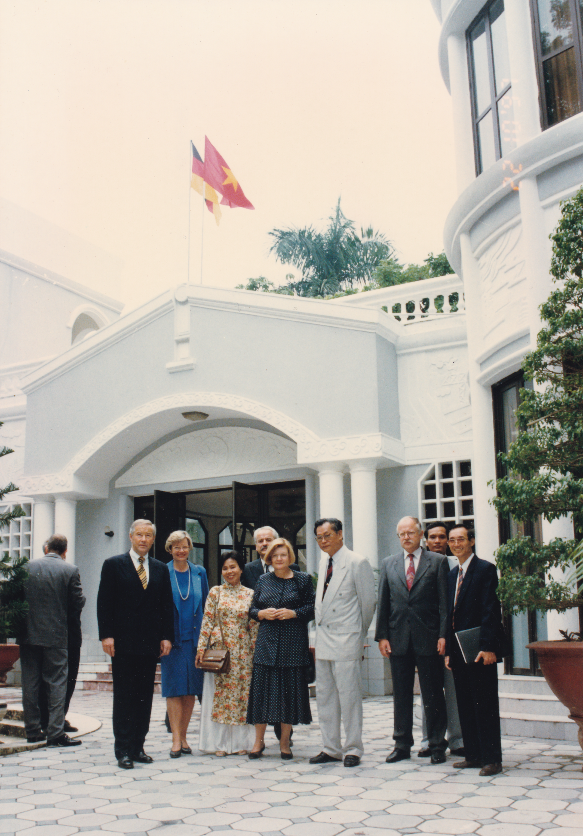 Nguyên Tổng Kiểm toán nhà nước Vương Hữu Nhơn chụp ảnh với các đối tác tại Trụ sỏ đầu tiên của KTNN 33 Hùng Vương