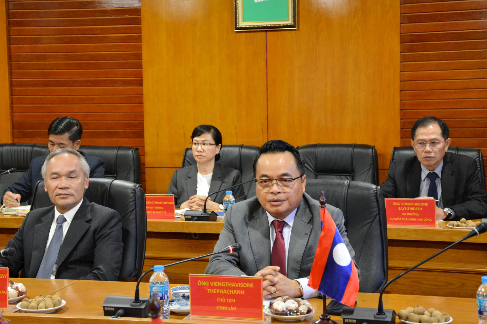 Tham gia buổi làm việc, về phía KTNN Lào có Phó Chủ tịch KTNN Lào Toy Phonthilath; lãnh đạo KTNN khu vực Nam Lào và lãnh đạo các Vụ của KTNN Lào.