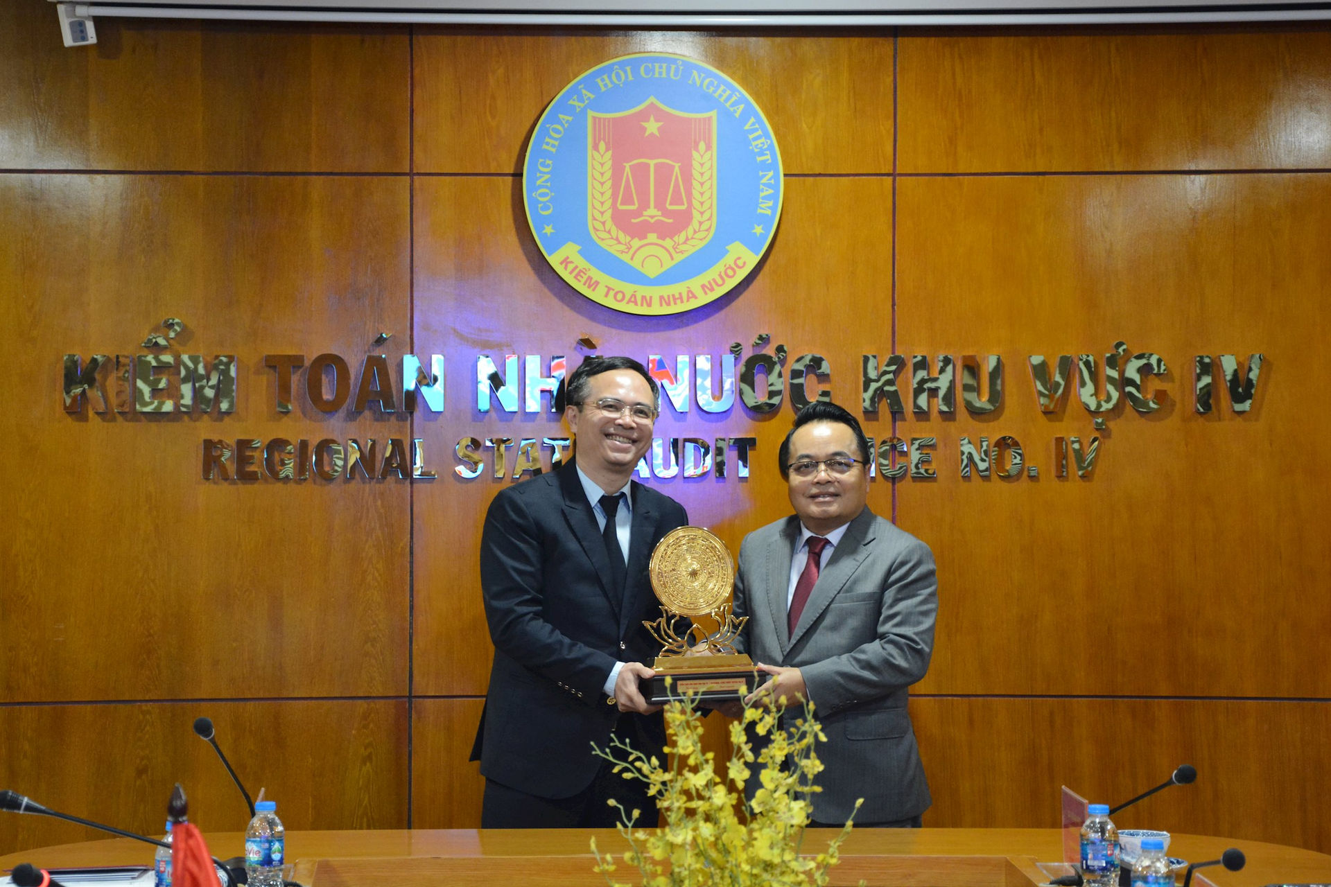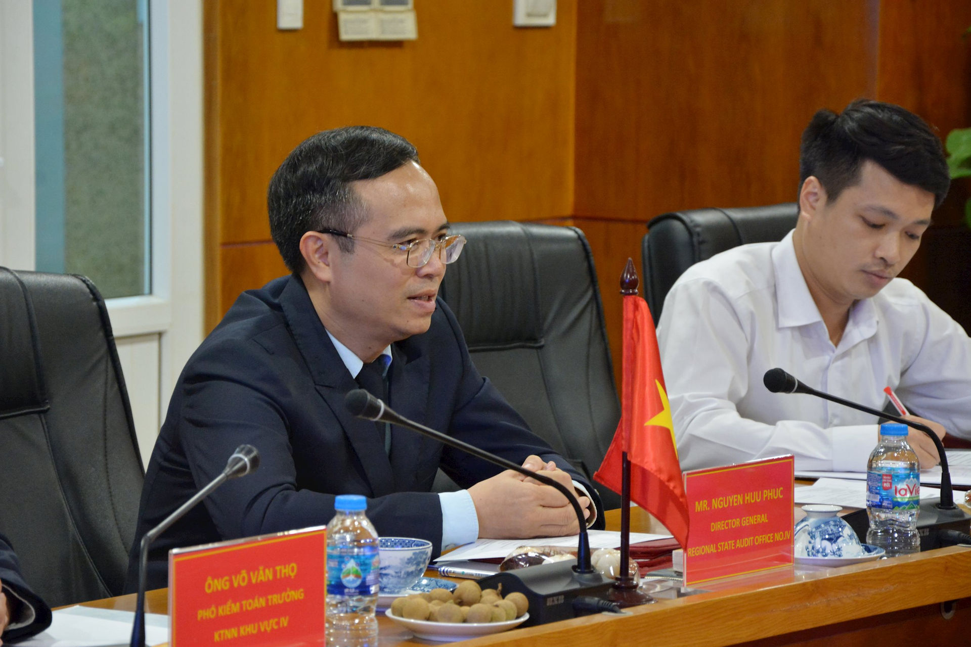Về phía KTNN khu vực IV có ông Nguyễn Hữu Phúc - Kiểm toán trưởng KTNN khu vực IV; ông Võ Văn Thọ - Phó Kiểm toán trưởng KTNN khu vực IV và lãnh đạo Vụ Hợp tác quốc tế.