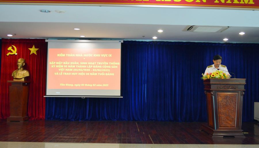 Sáng 03/02, Kiểm toán nhà nước (KTNN) khu vực IX tổ chức gặp mặt mừng Xuân Ất Tỵ, kỷ niệm 95 năm thành lập Đảng và trao Huy hiệu 30 năm tuổi Đảng cho đồng chí Lê Minh Mãn - Ủy viên Ban chấp hành Đảng bộ, Bí thư Chi bộ, Trưởng phòng Kiểm toán ngân sách 1.