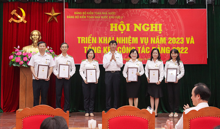 Tại Hội nghị, Lãnh đạo đơn vị đã công bố quyết định trao tặng Kỷ niệm chương cho 09 công chức đã góp sức cho sự phát triển của KTNN khu vực V và của KTNN. Cùng ngày, đơn vị đã tổ chức thành công Hội nghị Tổng kết công tác Đảng năm 2022./.