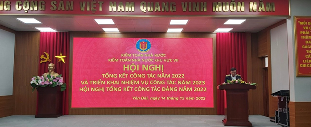 (sav.gov.vn) - Sáng ngày 14/12/2022, tại thành phố Yên Bái, tỉnh Yên Bái, Kiểm toán nhà nước (KTNN) khu vực VII đã tổ chức Hội nghị Tổng kết công tác năm 2022, triển khai nhiệm vụ công tác năm 2023 và hội nghị tổng kết công tác Đảng năm 2022. Uỷ viên Ban cán sự, Phó Bí thư Đảng uỷ, Phó Tổng Kiểm toán nhà nước Nguyễn Tuấn Anh dự và chỉ đạo hội nghị.